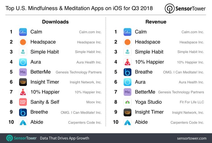 Most of the reception has been positive, and according to numbers provided to TechCrunch by SensorTower, Simple Habit was the third most popular meditation app in the iOS App Store for Q3 2018. The app trails only Calm and Headspace in terms of both downloads and revenue.