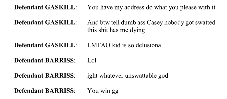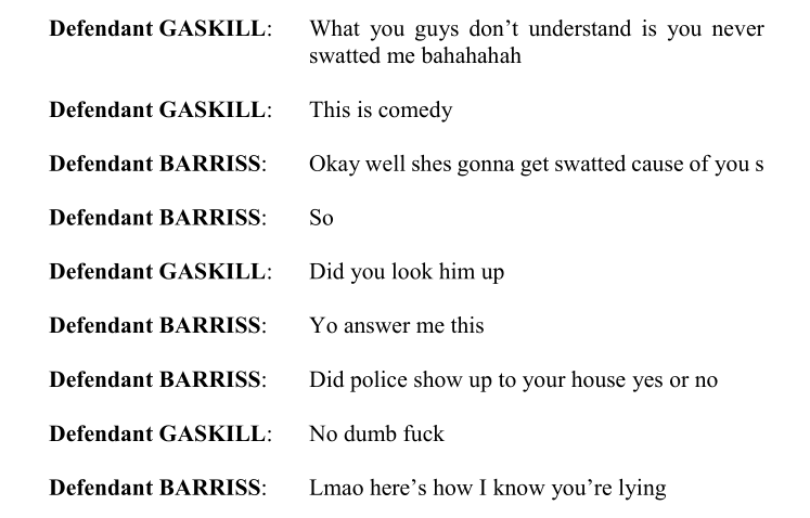 In simultaneously depressing and haunting Twitter conversations disclosed during the trial, Barriss and his target are seen exchanging direct messages, sparring over each other’s cred and making light of the swatting attempt.