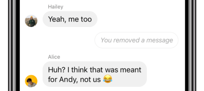 So why the seven-month wait? Especially given Instagram already allows users to unsend messages no matter how old? “The reason why it took so long is because on the server side, it’s actually much harder. All the messages are stored on the server, and that goes into the core transportation layer of our how our messaging system was built,” Chudnovsky explains. “It was hard to do given how we were architected, but we were always worried about the integrity concerns it would open up.” Now the company is confident it’s surmounted the engineering challenge to ensure an Unsent message reliably disappears from the recipient.