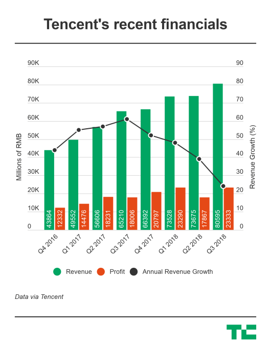 Tencent may be best known for conjuring up WeChat, China’s most popular messaging platform, but its revenue is driven by its gaming business, which includes top smartphone titles and a thriving PC unit. Its Q3 results, announced today, however, saw its gaming income slacken and other units, including a booming advertising business, step up.