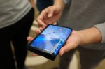 Liu happily dropped the phone a couple of times onstage in an attempt to put to rest any durability questions. While the display ultimately didn’t crack or scratch, the flexible material looks almost like cellophane and sports crinkles that catch the light — the clarity also leaves something to be desired.