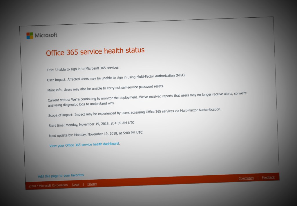 Good morning! Except if you’re a hosted Microsoft customer who’s locked out of your account right now.