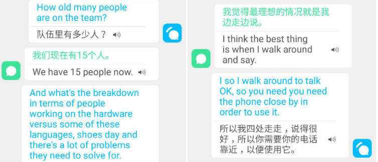 At present, the translations are somewhat delayed. The earpiece waits for you to finish speaking for a few seconds and then offers the translation in the other ear (as well as yours, to help you learn the language, apparently). The company told me that it plans to offer closer to real-time translation around launch.