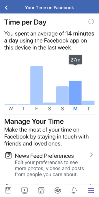 Fifteen weeks after Facebook announced its “Your Time on Facebook” tool that counts how many minutes you spend on the app, the feature is finally rolling out around the world. Designed to help you manage your social networking, the dashboard reveals how many minutes you’ve spent on Facebook’s app on that device each day for the past week and on average.