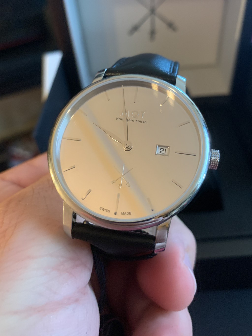 Ah, wonderful to see you again, sir. The usual? Kool-Aid Grain Alcohol Martini with a twisty straw. Of course. And I see you’re wearing a new watch. The MQT Essential Mirror. Quite striking.