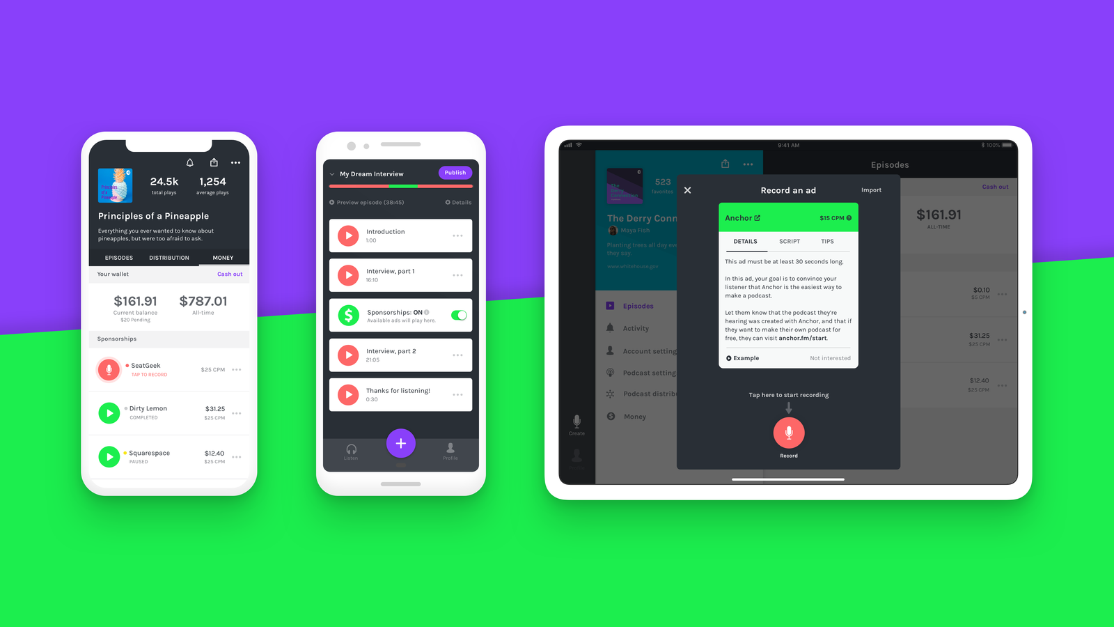 In the future, everyone will get Blue Apron ad copy. Meantime, Anchor’s helping users monetize their shows with Sponsorships, a new program designed to match podcasters with advertisers. The feature is pretty straightforward for anyone who’s ever attempted to make some money podcasting, but now it’s integrated into the site’s overall mission of democratizing the podcasting process.