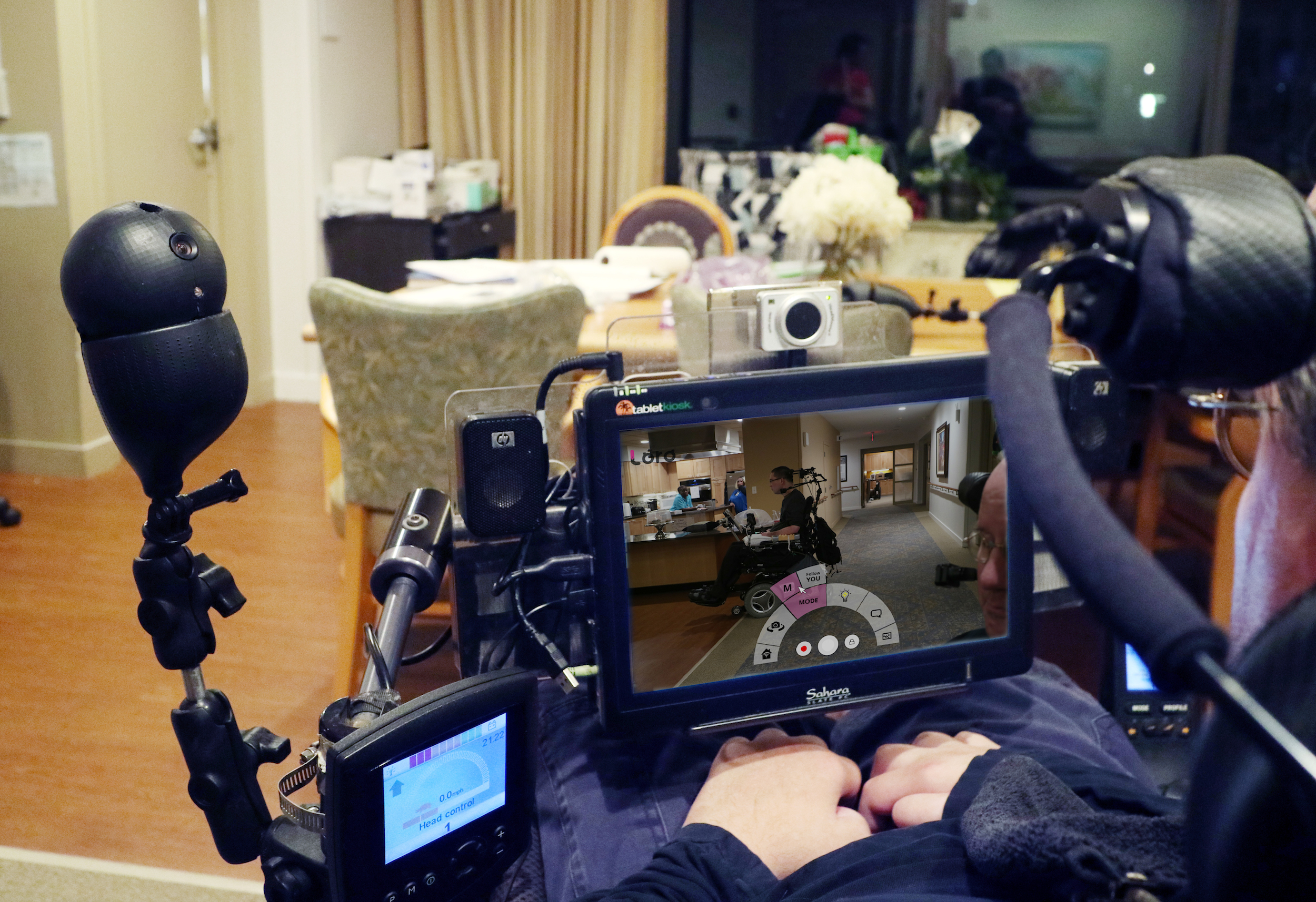 The camera can be directed to, for example, look behind the wheelchair so the user can safely back up. Or it can zoom in on a menu that’s difficult to see from the user’s perspective and read the items off. The laser pointer allows a user with no ability to point or gesture to signal in ways we take for granted, such as choosing a pastry from a case. Text to speech is built right in, so users don’t have to use a separate app to speak out loud.