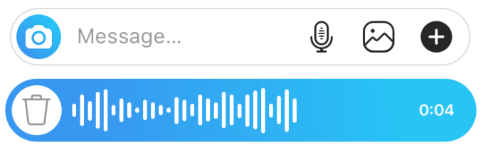 Users can hold down the microphone button to record a short voice message that appears in the chat as an audio wave form that recipients can then listen to at their leisure. Voice messages are up to one-minute long, stay permanently listenable rather than disappearing and work in one-on-one and group chats on iOS and Android. The feature offers an off-camera asynchronous alternative to the video calling feature Instagram released in June. It will have to compete with Viber, Zello and Telegram, as well as Facebook Messenger and WhatsApp for the use case.