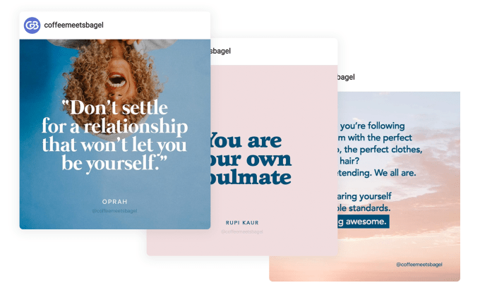 The app has also revamped its Discover and Suggested sections to offer seamless scrolling and better navigation, respectively. These sections are less cluttered than before, too, in keeping with the more minimalist spirit. Even the Coffee Meets Bagel logo has gotten a makeover, where the C and B now meet in the shape of a heart.The company’s anti-Tinder stance is shaping up in its social content, too. While Tinder has more recently embraced hook-up culture and the single life with its online publication “Swipe Life,” CMB is instead creating content that’s more inspiring, it says.