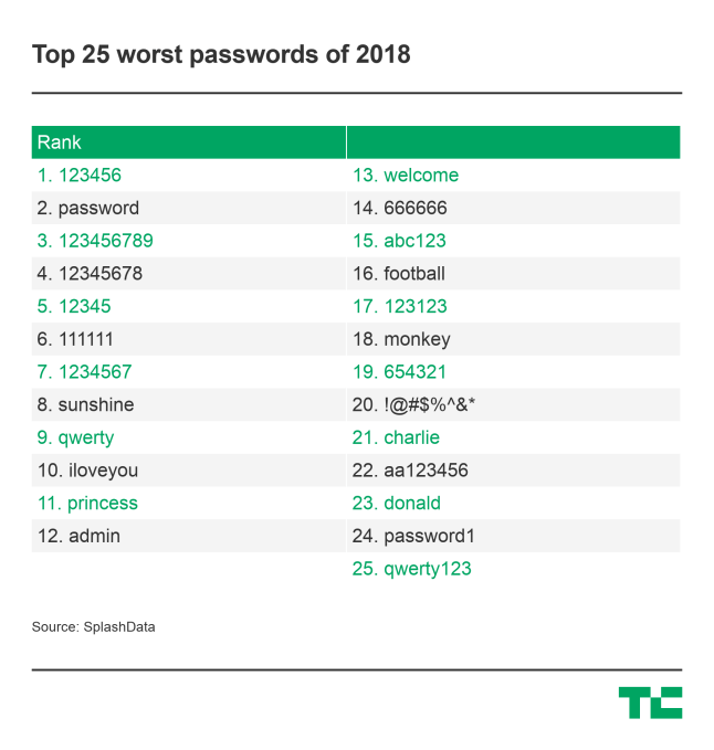 This year revealed the same takeaway as previous ones: computer users continue to use the same predictable, easily guessable passwords. For instance, 2018 was the fifth consecutive year that “123456” and “password” retained their top two spots on the list. The following five top passwords on the list are simply numerical strings, the company said.