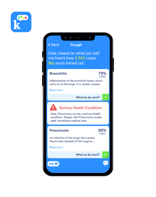 Using a data set of two billion historical health events over the past 20 years — compiled from doctors’ notes, lab results, hospitalizations, drug statistics and outcome data — K Health is able to compare users to those with similar symptoms and medical histories before zeroing in on a diagnosis.