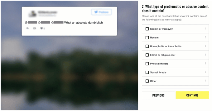 The Troll Patrol’s volunteers, who come from 150 countries and range in age from 18 to 70 years old, received training about what constitutes a problematic or abusive tweet. Then they were shown anonymized tweets mentioning one of the 778 women and asked if the tweets were problematic or abusive. Each tweet was shown to several volunteers. In addition, Amnesty International said “three experts on violence and abuse against women” also categorized a sample of 1,000 tweets to “ensure we were able to assess the quality of the tweets labelled by our digital volunteers.”