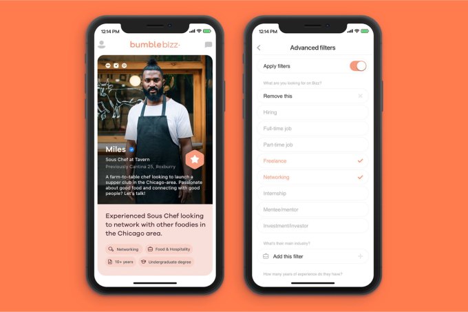 And Bumble Bizz users can filter by industry, networking relationship type, education and years of experience.