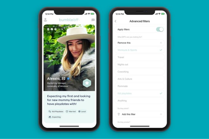 A dating app user may want to filter out those who are only looking for casual situations, while a business user may want to filter matches based on whether they’re looking for a job, mentor or collaborator, Bumble explains. And on Bumble’s friend-finding platform, Bumble BFF, people may want to filter for people who enjoy the same things they do — like fitness or photography.