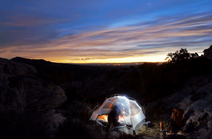 Okay, hear me out. As a pack weight-conscious backpacker, the idea of a light-up tent sounded ridiculous at first, but Big Agnes is onto something with their line of mtnGLO tents. I’ve been camping with the two-person Big Agnes mtnGLO Copper Spur tent for more than a season now and these things are really cool. The company has embedded thin strips of LED lighting into the tent itself, illuminating the inside more evenly than you can pull off with a headlamp alone without overpowering your hard-earned nature vibes.