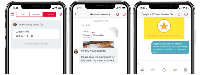 As it turns out, co-founder and CEO Danny Leffel tells me that those priorities are focused around a few specific things that are not the same as those for the other employment sector. One is to get the latest shift schedules for work, especially when they are not at work; another is to be able to swap those shifts when they need to; and a third, largely coming from the management end, is to make sure that everything gets communicated to the staff even when they are not in for work to attend a staff meeting.