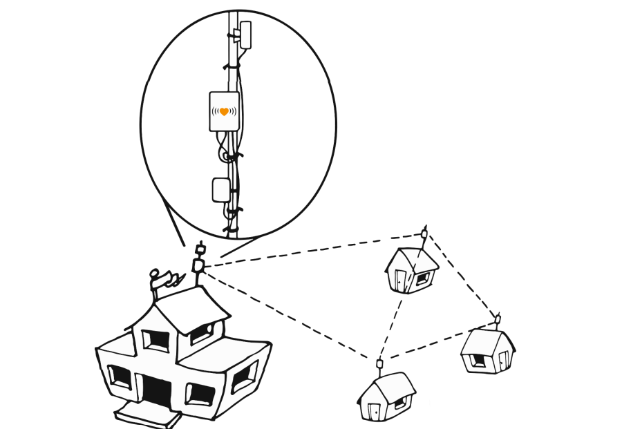 So instead of having people come to the signal, you bring the signal to them with a mesh network: a collection of interconnected wireless routers that pass signals to and from anyone who can reach one of them.