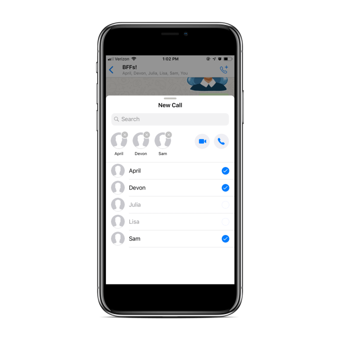 In the new design, you can go to the group whose members you want to call, then tap on the phone icon at the top-right corner of the screen to get started. From the next screen, you’ll tap the contacts within the group you want to call, then tap the voice or video button — depending on what type of call you want to make.