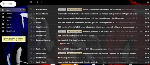See that animated GIF above? That’s how I manage my CES email. I scroll through the subject lines, look for people I know, then select all unread and delete them. One of the worst things about CES is that the letters “CES” show up in multiple words and, barring writing a regular expression, it is very difficult to filter them out; 99 percent of your CES emails will go unread.