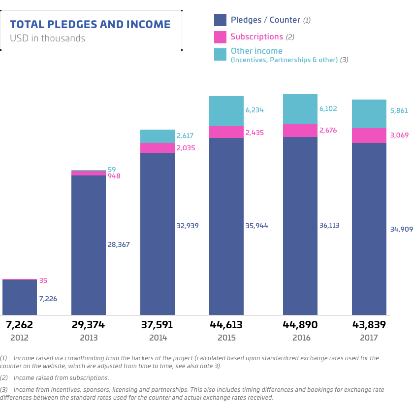 I’m sure it has escaped no one that pledges appear to have peaked, though if they remain steady the company clearly will have enough to continue operations if it doesn’t expand. But one does also see perhaps a secondary motive in seeking investment from outside the community. At some point people are going to want a game.