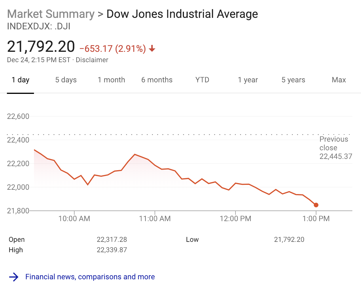So now the Dow has fallen some 653 points,