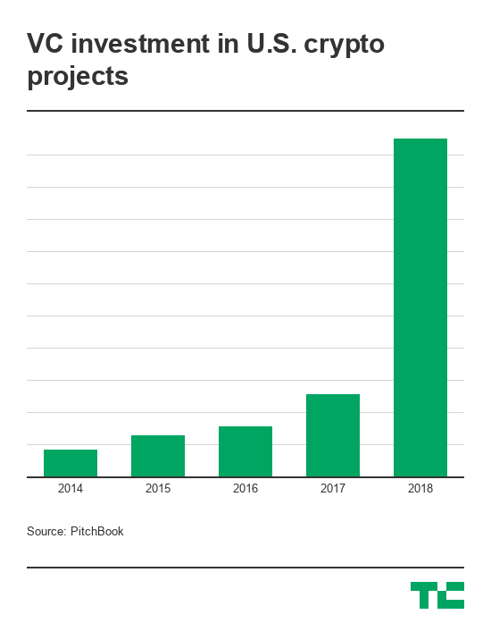 Many Bitcoin startups floundered in 2018, despite record amounts of venture capital invested in the industry. This was as a result of failed initial coin offerings, an inability to scale following periods of rapid growth and the falling price of Bitcoin. Still, VCs remained bullish on Bitcoin and blockchain technology in 2018, funneling a total of $2.2 billion in U.S.-based crypto projects — a nearly 4x increase year-over-year. Around the globe, investment hit a high of $4.6 billion — a more than 4x increase from last year, according to PitchBook.