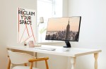 What the Space Monitor does is very simple: it clamps to your desk and sits straight up from the edge — up against the wall if there is one — and takes up about as little space as it’s possible for a display to.