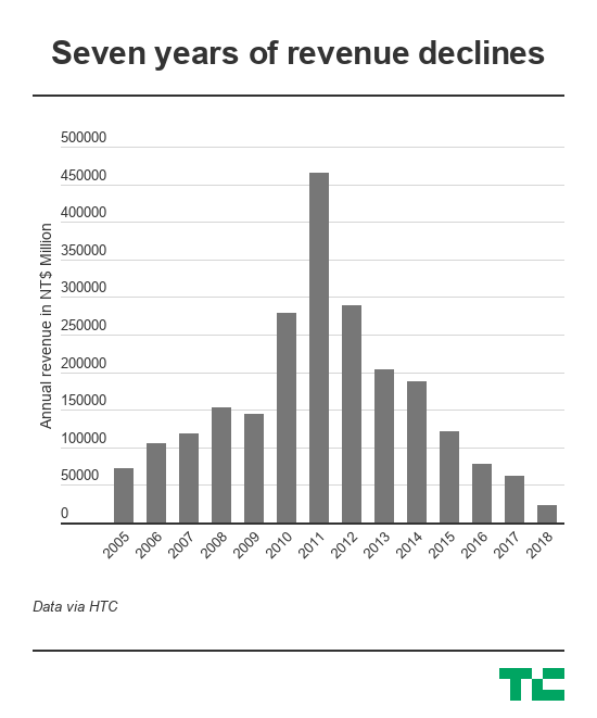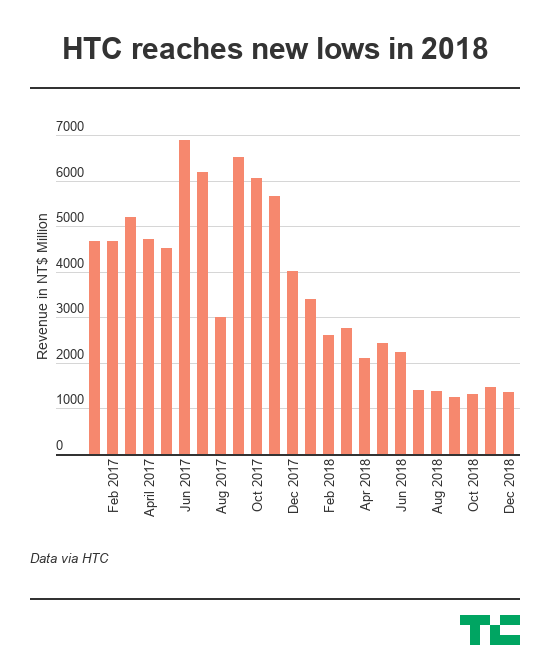 The Taiwanese smartphone company, which offloaded a portion of its business to Google for $1.1 billion and is pivoting to VR, laid off yet more staff in 2018 and had its worst year of sales ever.