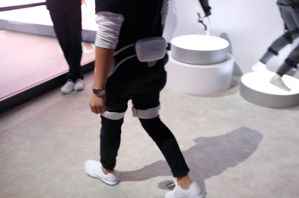 Having taken the hip system for a bit of a spin in Samsung’s booth, I can at least say that the assistive and resistance modes do work. A rep described the resistance as feeling something akin to walking under water, and I’m hard-pressed to come up with a better analogy. The assistive mode is a bit hard to pick up on at first, but is much more noticeable when walking up stairs after trying out the other mode.
