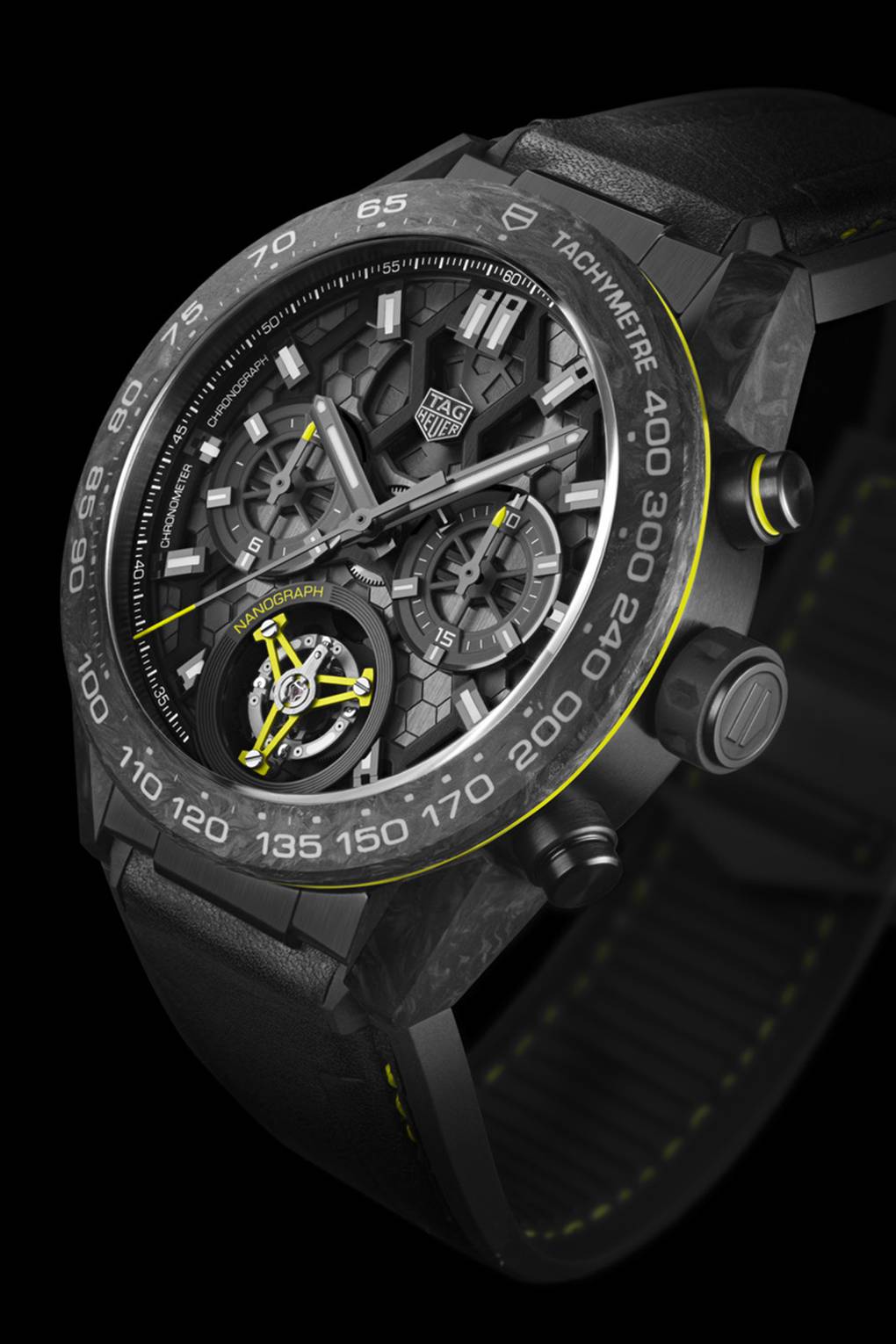 TAG Heuer loves experimenting with new materials and the Nanograph features a new hairspring design that is unique to TAG. The hairspring, which is made of carbon-composite, is lightweight and unaffected by gravity or shock. It also offers “perfect concentric oscillations” and is completely antimagnetic. Couple that with the rotating tourbillon and the suggestion is that this watch will remain accurate under all sorts of pressure.