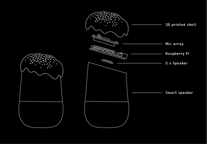 The Raspberry Pi-powered, fungus-inspired blob’s mission is to whisper sweet nonsense into Amazon Alexa’s (or Google Home’s) always-on ear so it can’t accidentally snoop on your home.