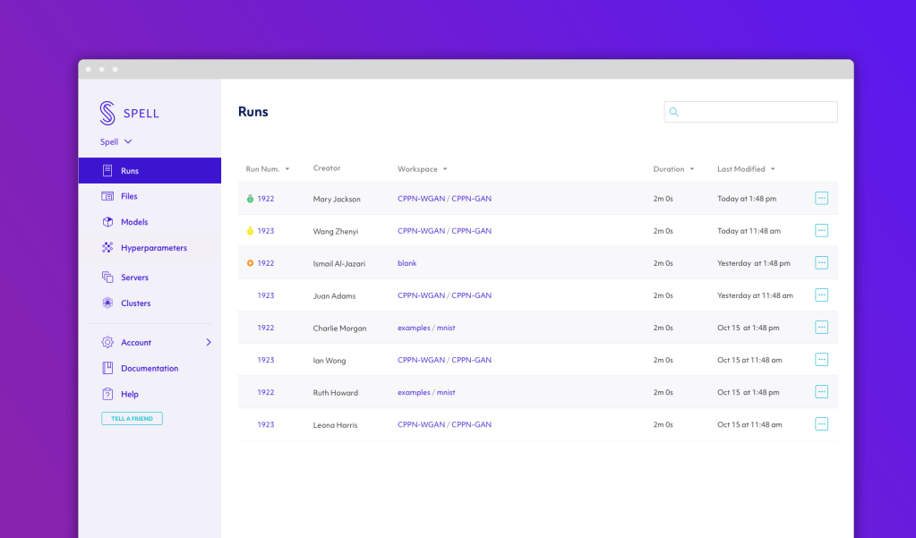 Individual users can get on for free, specify the type of GPU they need to compute their experiment and simply let it run. Corporate users, on the other hand, are able to view the runs taking place on Spell and compare experiments, allowing users to collaborate on their projects from within the platform.