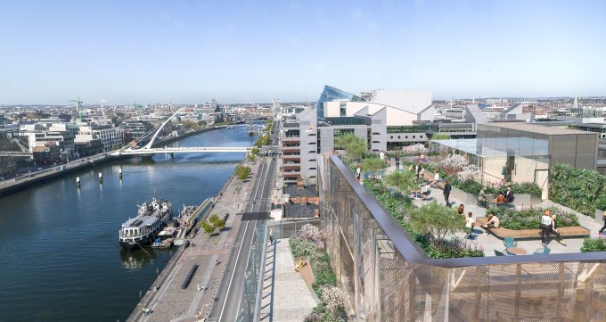 The new tower in Dublin is actually going to be a campus made up of four interconnecting buildings on the River Liffey. It will eventually encompass 430,000 square feet with the first employees expected to move into the new facility sometime in the middle of 2021.