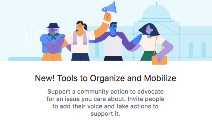 “Building informed and civically engaged communities is at the core of Facebook’s mission. Every day, people come together on Facebook to advocate for causes they care about, including by contacting their elected officials, launching a fundraiser, or starting a group. Through these and other tools, we have seen people marshal support for and get results on issues that matter to them. Community Action is another way for people to advocate for changes in their communities and partner with elected officials and government agencies on solutions.”