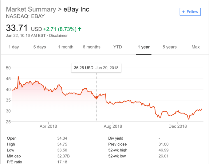 Elliott is making this request as managers of funds owning more than 4 percent of eBay’s stock. It believes that with some tweaks, the company stock, which sits at $33.71 this morning (up over eight percent) could be worth substantially more. In fact, the company believes if eBay follows its advice it could increase the stock price to $55-$63 per share.
