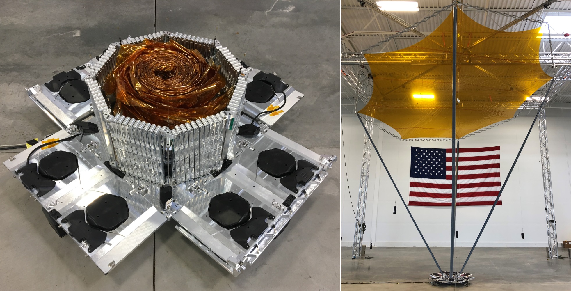 The satellite itself is actually more of a short-term science experiment. It’s a “membrane antenna,” a thin layer of Kapton folded up into a tiny space that, upon reaching orbit, will unfurl to its full 7-foot diameter. The larger surface area may make for better signal reception and transmission, and packing into a smaller area of course makes more room for other components. (R3D2 stands for Radio Frequency Risk Reduction Deployment Demonstration, by the way.)