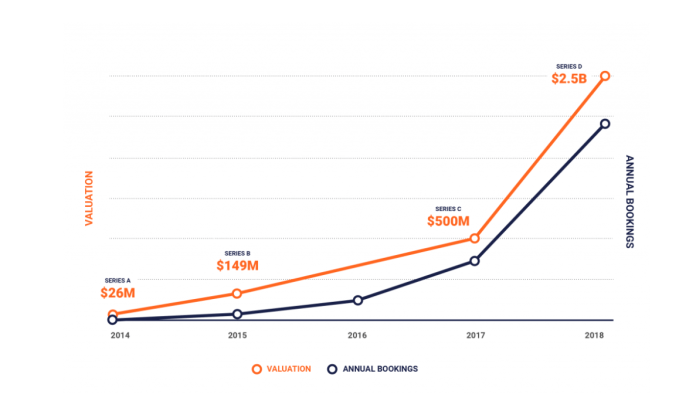 The valuation soared from the previous round when the company was valued at $500 million. What’s more, the company’s bookings have scaled along with the valuation.