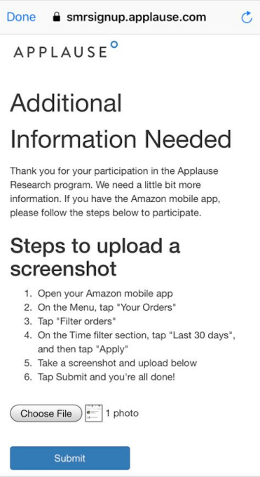 Once installed, users just had to keep the VPN running and sending data to Facebook to get paid. The Applause-administered program requested that users screenshot their Amazon orders page. This data could potentially help Facebook tie browsing habits and usage of other apps with purchase preferences and behavior. That information could be harnessed to pinpoint ad targeting and understand which types of users buy what.