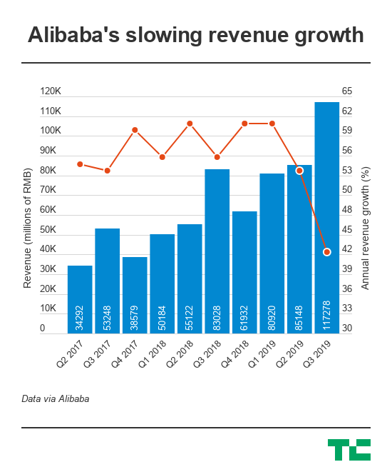 The Hangzhou-based firm rang up $17 billion in revenue during the third quarter of 2018. That’s a 41 percent increase from the previous year, but it also marks the slowest pace of growth since early 2016. Revenue from the quarter was driven by growth in the firm’s core e-commerce unit, the newly formed local services business between Koubei and Ele.me and its fledgling cloud business, which now commands more than half of the Chinese market, Alibaba executive Joe Tsai said (paywalled) this month.