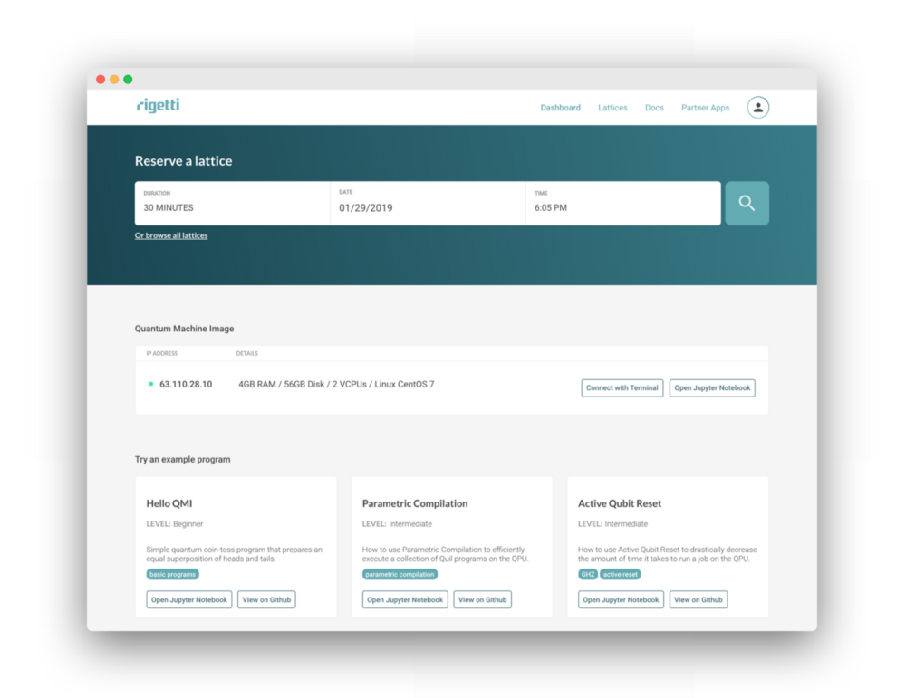 Beta users will get $5,000 in credits toward running their programs on the platform. The platform itself consists of classical computing resources (you still need those as the quantum chips are essentially specialized co-processors) and Rigetti’s quantum chips, including two of its latest Aspen quantum processors. In order to run your algorithms on those chips, you’ll have to book time using the service’s online booking system.
