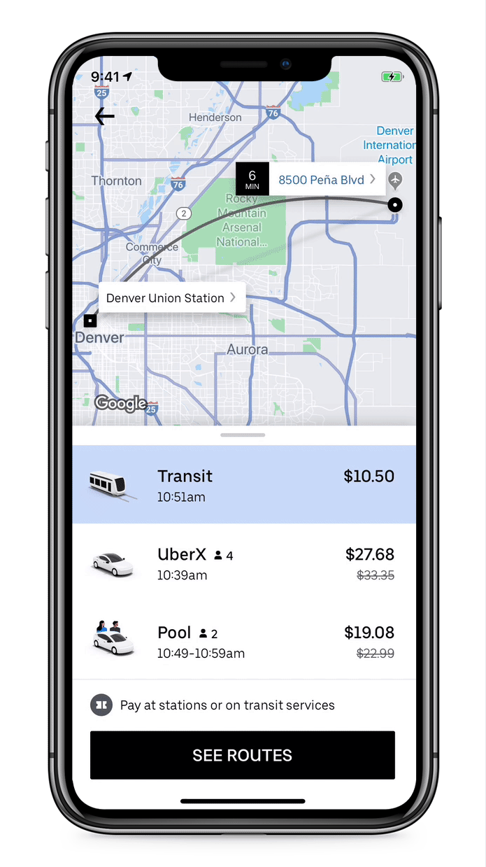 Uber, after announcing its intentions to get into public transit last April, is ready to launch in Denver. In partnership with the Regional Transportation District and transit data provider Moovit, residents of Denver will now be able to navigate public transportation within the Uber app.