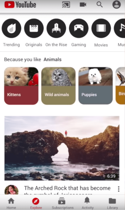 Today, YouTube’s recommendation technology relies heavily on past viewing activity and other in-app behavior to make its content suggestions, the company explained. With the Explore tab, however, YouTube aims to widen recommendations to include various topics, videos and channels you may not have otherwise encountered.