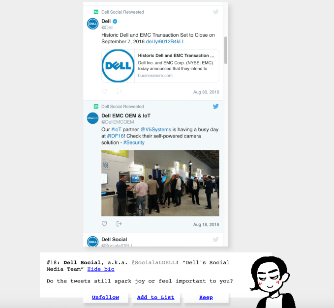 Once up-and-running, the tool asks you if the tweets still spark joy or feel important?