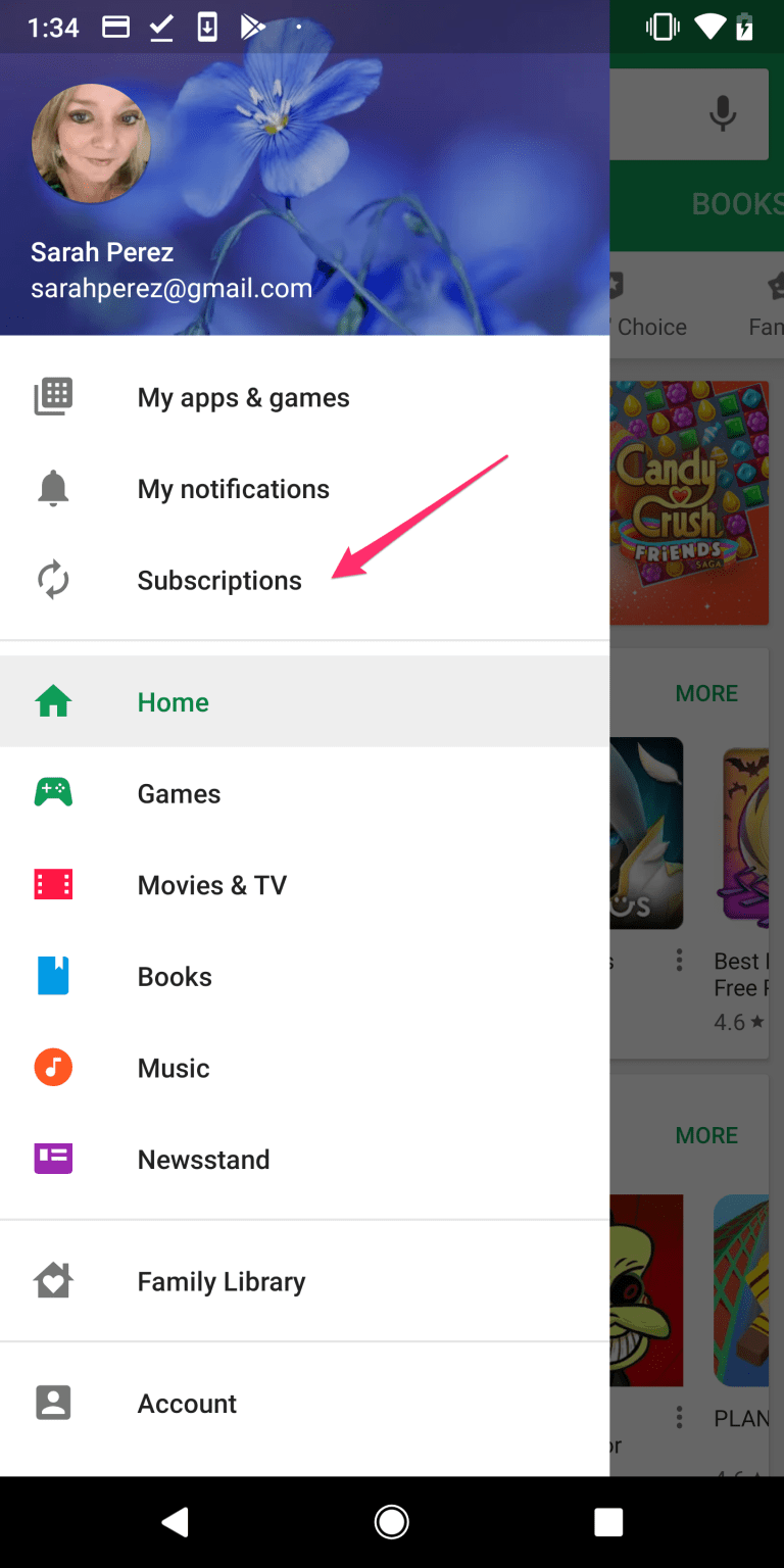 By comparison, Google Play put subscriptions in its top-level navigation with no scrolling or extra clicks required.