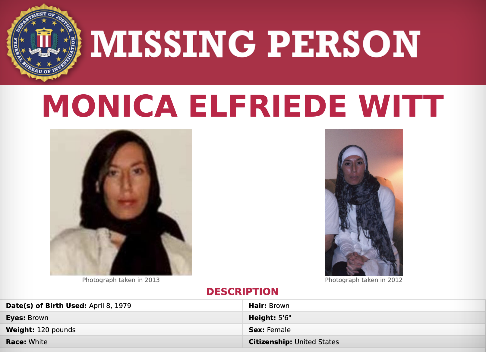 Once deemed missing by the FBI, the agency has since issued an arrest warrant for Witt, who is still believed to be in Iran.