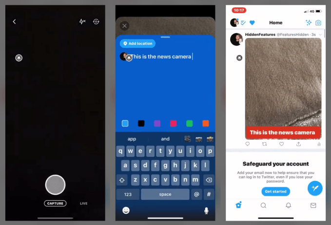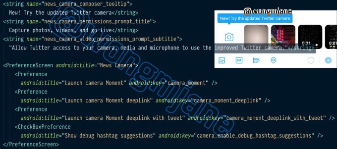 Meanwhile, code digger and frequent TechCrunch tipster Jane Manchun Wong has found Twitter code describing how users should “Try the updated Twitter camera” to “capture photos, videos, and go live”. Bloomberg and CNBC had previously reported that Twitter was building an improved camera, but without feature details or screenshots.