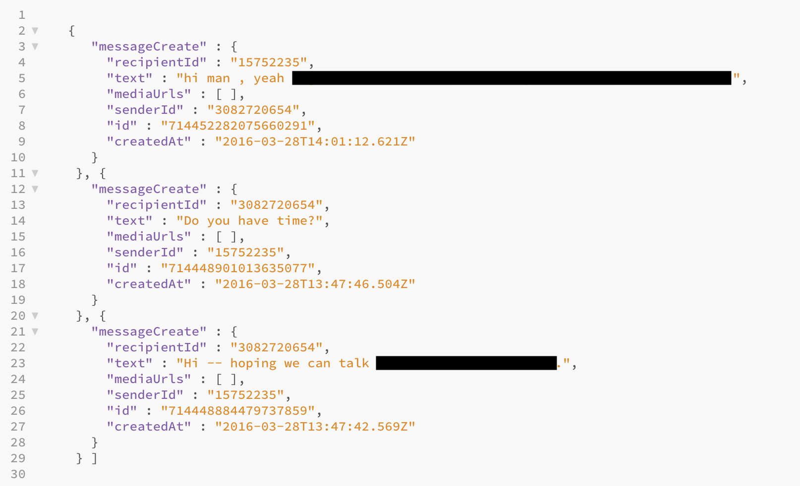 Saini found years-old messages in a file from an archive of his data obtained through the website from accounts that were no longer on Twitter. He also reported a similar bug, found a year earlier but not disclosed until now, that allowed him to use a since-deprecated API to retrieve direct messages even after a message was deleted from both the sender and the recipient — though, the bug wasn’t able to retrieve messages from suspended accounts.