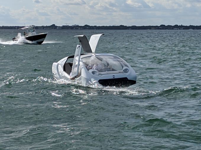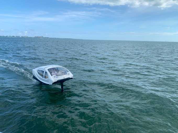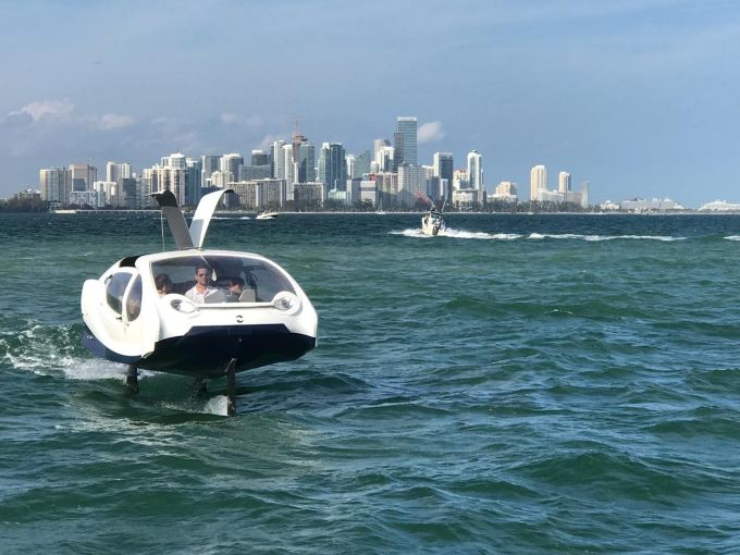 SeaBubbles, a “flying” boat startup that uses electric power instead of gas, hit Miami this weekend to show off one of its five prototype boats — or six, if you count an early, windowless white boat they’ve lovingly dubbed the “soapdish.” This innovative boat design combines technology from nautical industries and aviation and intelligent software to raise the hull of the boat out of the water using foils, which helps it consume less energy by allowing it to travel on rougher waters with reduced drag, while also keeping the passenger cabin relatively comfortable.