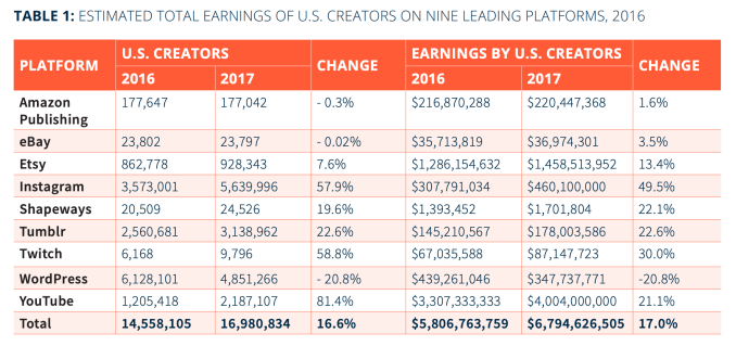 Twitch is one of the fastest-growing platforms for American content creators. In terms of year over year growth in number of creators themselves, Twitch falls just behind Instagram and YouTube, and ranks second behind Instagram in YOY revenue growth for those creators. (Fun Fact: Instagram’s creator-based revenue growth grew nearly 50 percent from 2016 to 2017 to $460 million, according to the study.)