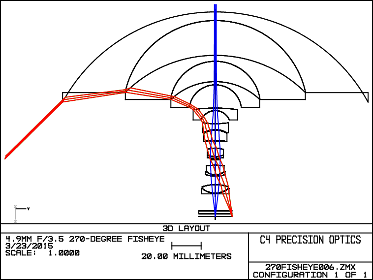 The C-4 Optics 4.9mm f/3.5 Hyperfisheye Prototype, as they call it (hereafter “the lens”) first appeared as what seemed at the time to be an April Fools’ joke, at best half-serious. “The Flying Saucer,” as they called it, AKA the Light Bender, AKA the Mother of all Fisheye Lenses, included a vaguely plausible optical diagram showing the path of light traveling from the far edge of its view, from about 45 degrees rearward of the camera.
